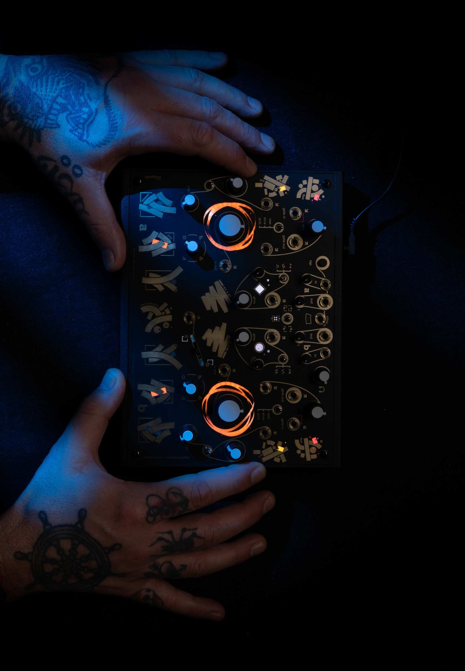 The heart of the interface lies in the two LED rings that visualize your loops as they breathe. As you record, modulate, and manipulate your audio, these rings provide a physical sense of time. The faceplate itself is a tribute to the era of magnetic tape—the touch pads are shaped like spliced strips, giving you a tactile connection to your sound design. Whether you’re processing an acoustic cello or syncing it to a sprawling modular rig, we wanted Spotykach to be the centerpiece where your ideas finally take shape.