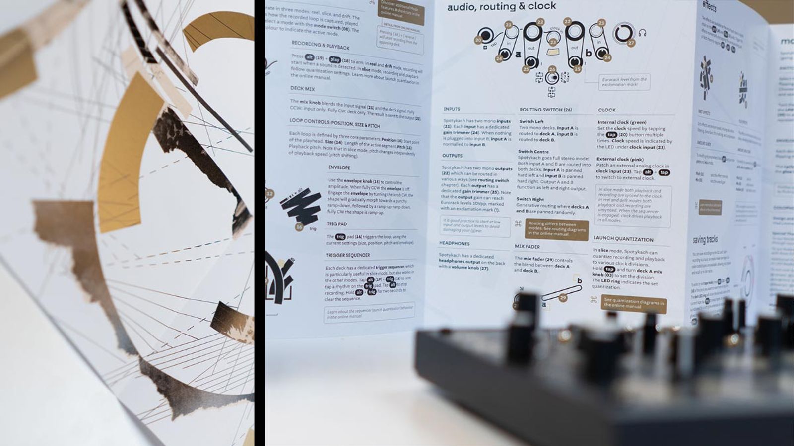 That artwork comes from Tom Tebby, an artist I met at Superbooth 2025. Tom is a master of old-school collage—cutting, composing, and gluing paper by hand. He took inspiration from the Spotykach faceplate to create a custom piece that makes the manual feel less like a "data sheet" and more like a collector's item.